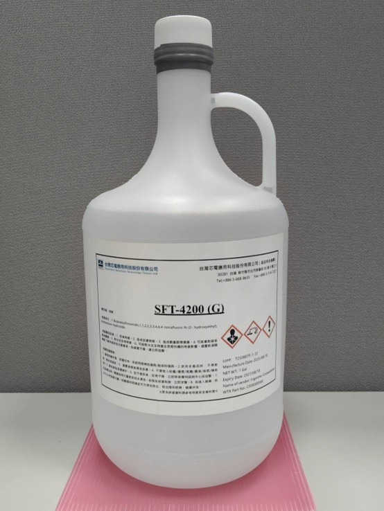 SFT-4200 is an anionic fluorochemical surfactant with low metal content. SFT-4200 surfactant provides low surface tensions in buffered HF (BHF)/buffered oxide etch (BOE) solutions, as well as some other aqueous solutions.
